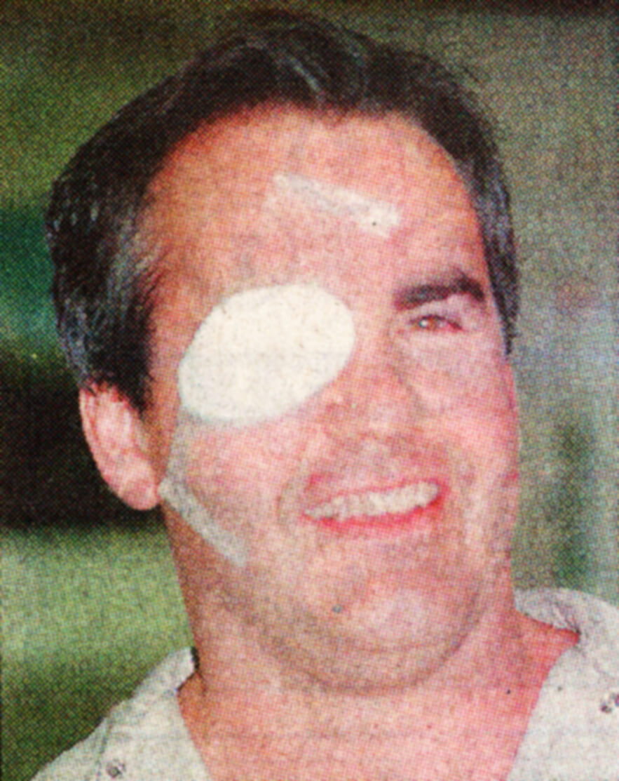 I don’t think we learned about Timoney’s eye incident until we followed the film crew to the hospital, joining their lunch. When we saw him there, he was sporting a white patch over his right eye—smiling and appearing in good spirits. I recall my parents talking to him upon sight, and I was introduced to him.