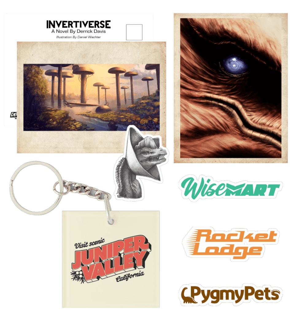 The merchandise store at Zazzle features a myriad of products that were created as promotional items for the novel ‘Invertiverse.’ You’ll even find some exclusive designs not found in the book, including in-universe gift shop items. Warning: Several of the featured illustrations do contain spoilers.