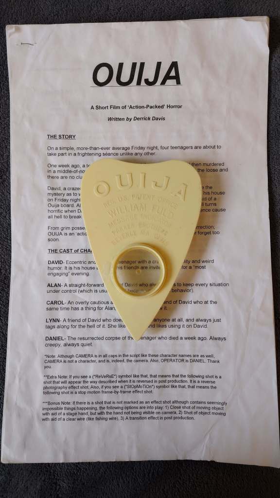 To end my massive story behind ‘OUIJA,’ we are going back to where it all began. “Part Two” of this article showcases the document that I wrote in 2004, with some minor revisions. I hope you enjoy “teenager Derrick” and his writing. And please if you haven’t already, watch my ‘OUIJA’ film, damn it! Have a good laugh and be sure you stay through the credits! Lastly… if you somehow summon any spirits by mistake, make sure they “go to hell, and stay there this time!”